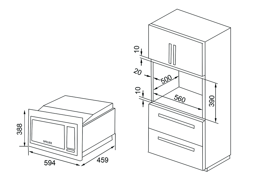Lò vi sóng âm tủ kết hợp lò nướng 2 trong 1 SP 8206 EU
